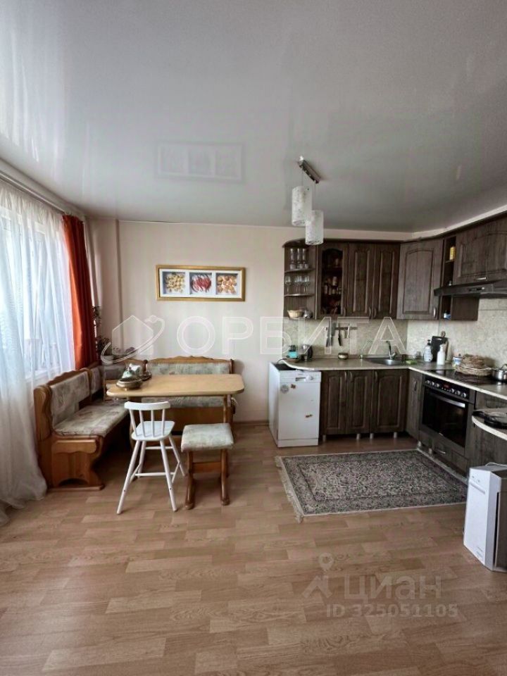 В квартире так же остаётся кухонный гарнитур, со встроенной рабочей плитой, духовкой, вытяжкой, посудомоечной машиной, холодильником и угловая обеденная зона.