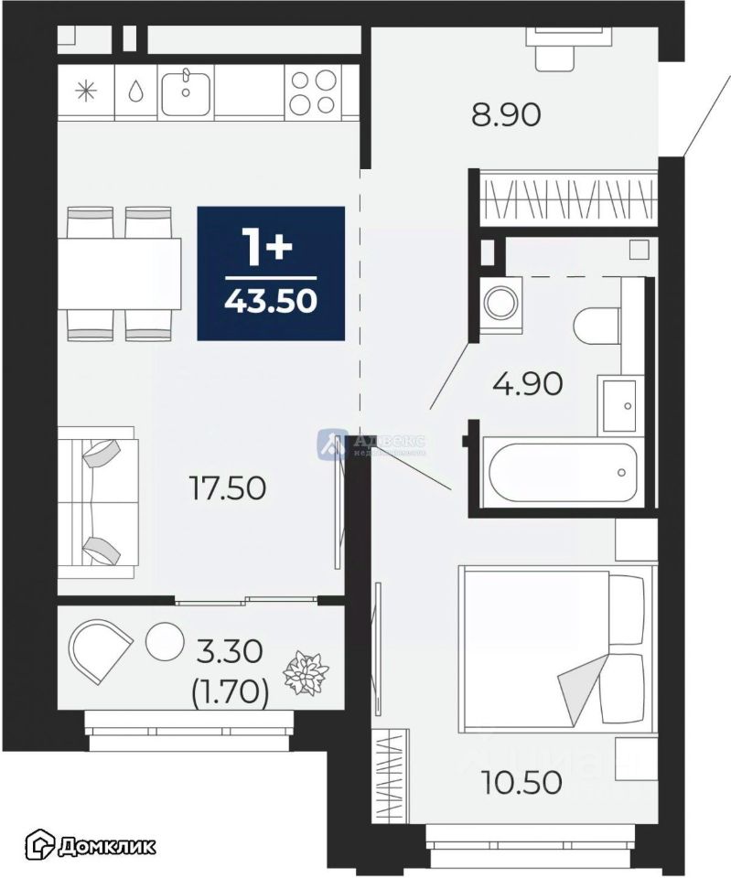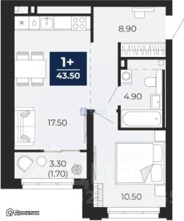 Продается просторная 1-комнатная квартира в новом доме на 6 этаже 24-этажного здания. Общая площадь квартиры составляет 43.50 квадратных метра, из них 20.5 квадратных метра занимает кухня.