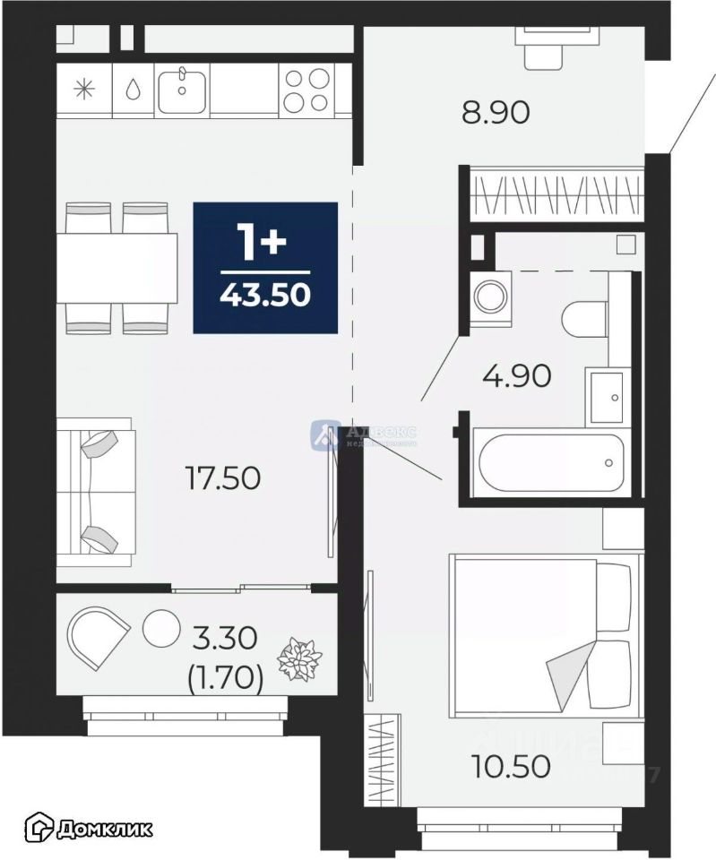 Продается просторная 1-комнатная квартира в новом доме на 5 этаже 24-этажного здания. Общая площадь квартиры составляет 43.50 квадратных метра, из них 20.5 квадратных метра занимает кухня.