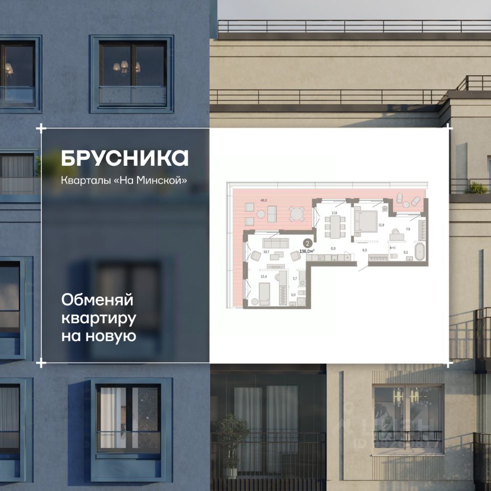 Просторная 2-комн. квартира с предчистовой отделкой в Кварталы "На Минской" на 7 этаже. Общая площадь: 135.98 кв.м. Высота потолков 2.7 м.