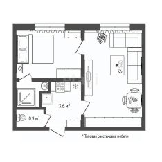 Самая большая площадь - 25 кв.м! В квартире 2 комнаты, зона кухни и свой санузел.