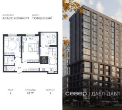 Продаётся квартира площадью 72 м2 в жилом комплексе "Дабл-Дабл". Квартира находится на 2 этаже, жилая площадь квартиры 31.8 м2, площадь просторной кухни — 17.3 м2. Среди особенностей планировки — изолированные комнаты с окнами на одну сторону, 1 совмещённый санузел.