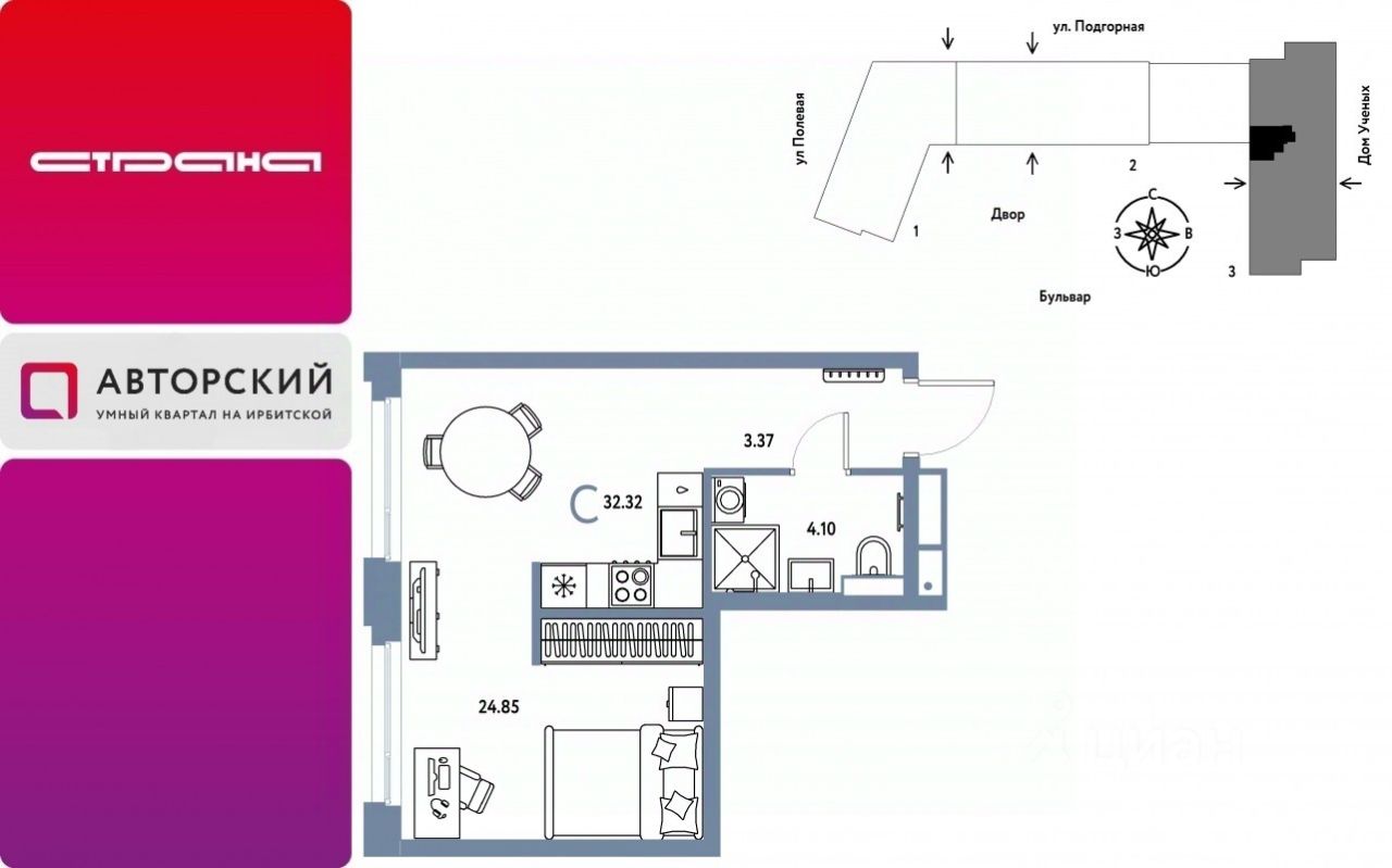 Новая квартира в ЖК "Авторский" напрямую от федерального застройщика "Страна Девелопмент". Продается студия на 7 этаже от застройщика Страна Девелопмент. Площадь квартиры 32,32 кв. м. Жилой комплекс "Авторский" — квартал для авторов своей жизни от федерального застройщика "Страна Девелопмент" вблизи исторического центра — до Моста Влюблённых 4 минуты на авто, а ещё рядом ведущие вузы Тюмени. ПРЕИМУЩЕСТВА - Тематический бульвар объединяет дома и закрытые дворы квартала в единую экосистему: зелень, перголы для отдыха, детские и спортивные площадки. По вечерам бульвар преображается: освещение создаёт уютную атмосферу. - Новый детский сад рядом, который появится в 2026 году прямо в одном из корпусов комплекса. В нём выделено 150 мест для малышей. - Во дворах нет машин, шума, выхлопных газов и посторонних людей. Всё пространство разделено на зоны по интересам и возрастам. Для детей — игровые площадки из эко-материалов и мягкая защита от падений. Для взрослых — зоны отдыха, воркаут-площадки и тропинки для неспешных прогулок. ОТДЕЛКА Квартиры сдаются с предчистовой отделкой: произведена разводка электричества и отопления, выполнена стяжка пола, стены выровнены "под маяк", установлены розетки, выключатели и радиаторы. ДИЗАЙНЕРСКАЯ ОТДЕЛКА При покупке квартиры в ЖК "Авторский" можно включить стоимость ремонта в ипотеку. Пять вариантов на выбор: хлопковая нить, серый шторм, белый камень, шалфей, голубой вереск. СПОСОБЫ ПОКУПКИ Сотрудники "Страна Девелопмент" будут сопровождать вас на каждом этапе сделки, помогут получить одобрение по ипотеке или снизить ежемесячный платеж. - ипотека - рассрочка - с использованием материнского капитала -100% оплата наличными Цены на квартиры указаны без учета скидок. На консультации менеджер подскажет, какие акции действуют, и как получить одобрение по ипотеке с низкой ставкой.