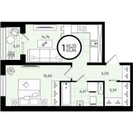 Общая площадь42,86 м²