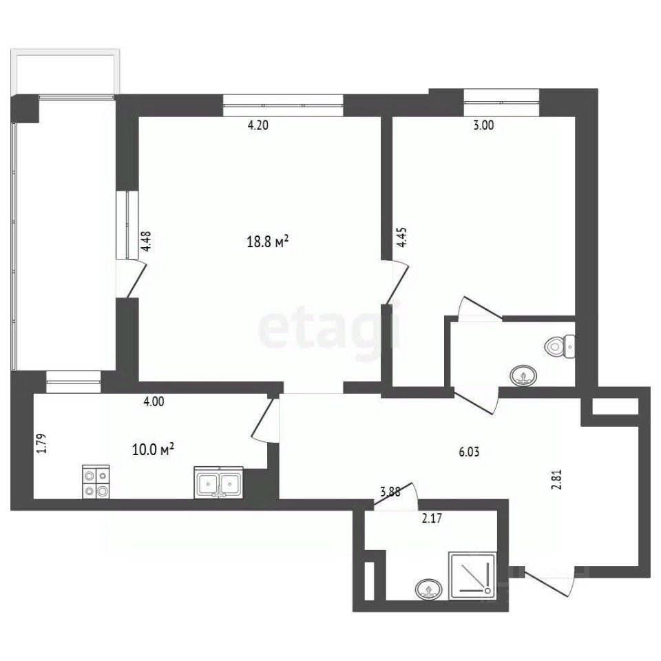 • Отдельное пространство для кухни: Изолированная кухня с необходимой техникой и рабочими поверхностями.