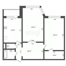 Квартира находится на комфортном 9 этаже. Общая площадь - 73,8 кв.м. Две полноценные спальни и просторная кухня-гостиная. Удобная планировка с правильными прямоугольными комнатами обеспечит вам максимальное использование пространства. Раздельный санузел и вместительный коридор добавляют удобства в повседневной жизни.