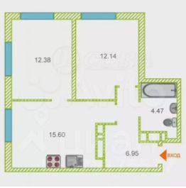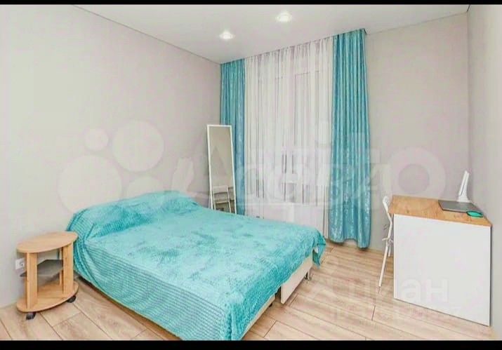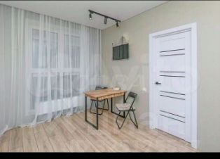 В квартире натяжной потолок с треком и точечными светильниками. на стенах однотонные обои. На полу ламинат 33 класса. Белые двери с чёрной фурнитурой. Имеются закладные для встроенных шкафов в прихожей и спальне.