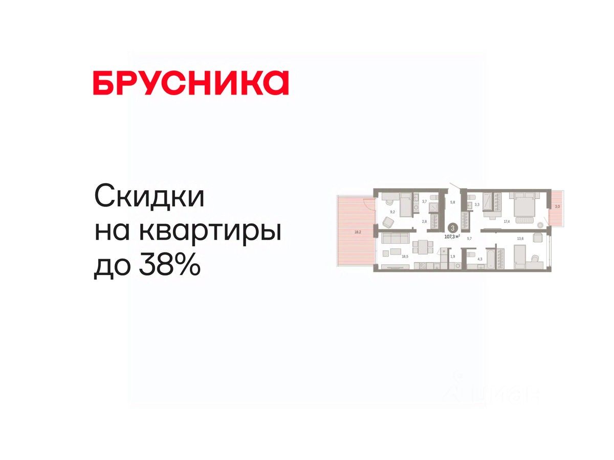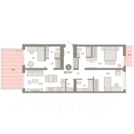 Просторная 3-комн. квартира с предчистовой отделкой в ЖК "Республики 205" на 2 этаже. Общая площадь: 107.32 кв.м. Высота потолков 2.7 м.