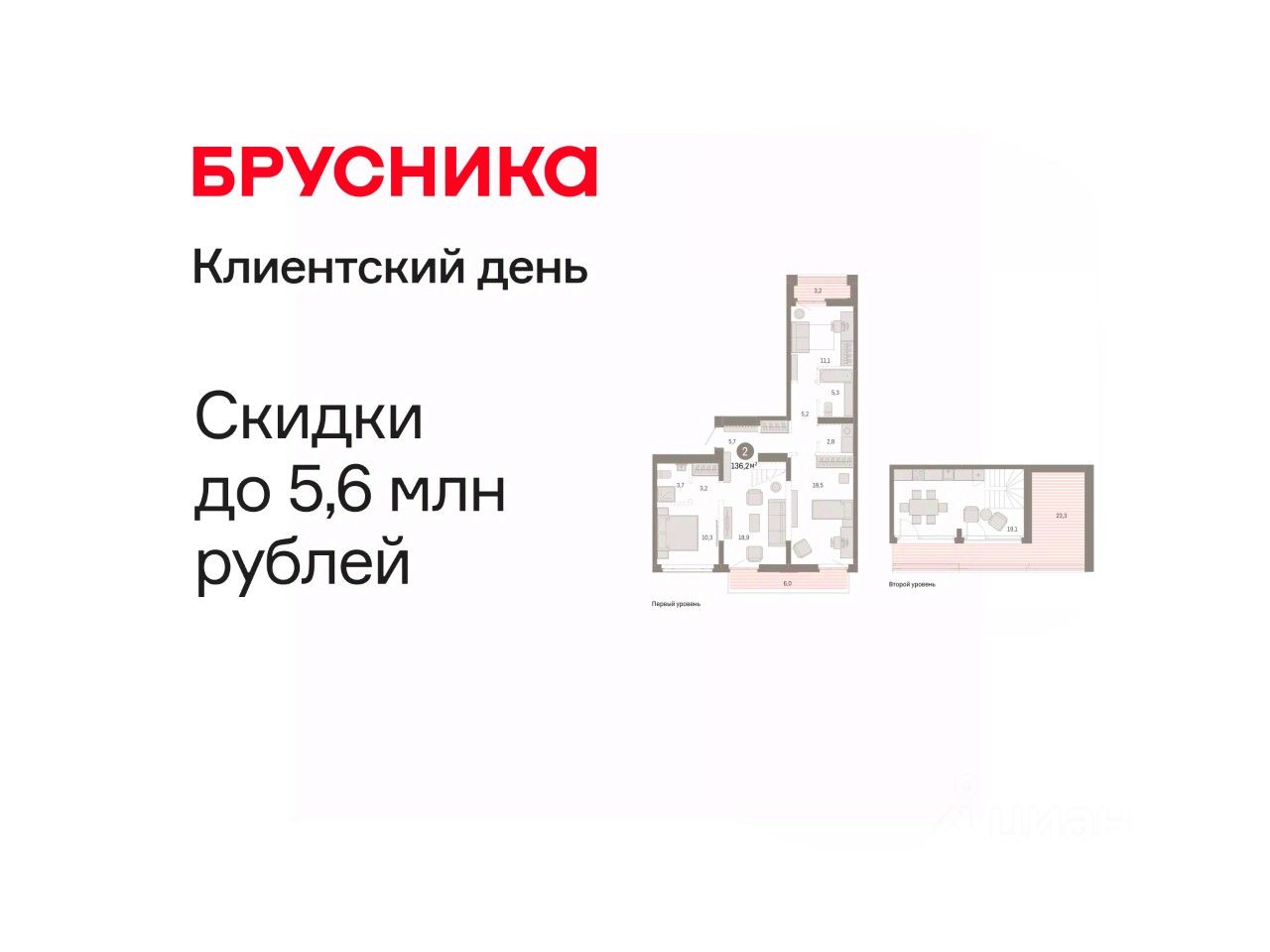 2-комн. квартира с предчистовой отделкой в ЖК "Республики 205" на 8 этаже. Общая площадь: 136.21 кв.м. Высота потолков 2.7 м.