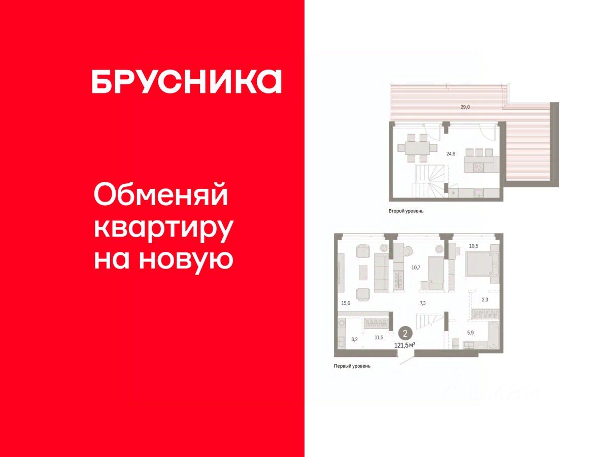 Продается 2-комн. квартира с предчистовой отделкой в ЖК "Республики 205" на 8 этаже. Общая площадь: 121.5 кв.м. Высота потолков 2.7 м.