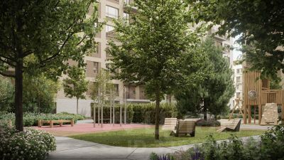 Пешеходные бульвары внутри района соединят между собой улицу ресторанов, детские и спортивные площадки, событийную площадь и летний кинотеатр.