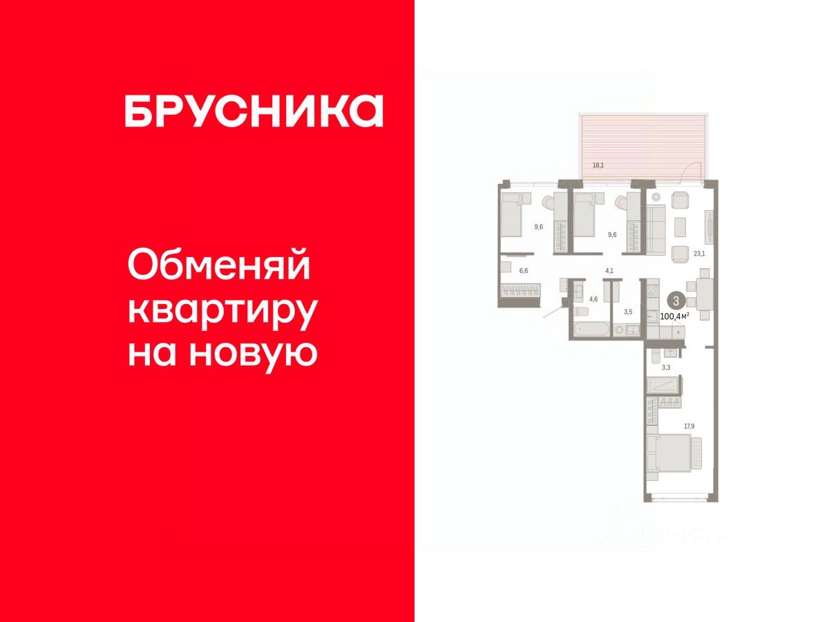 Продается трехкомнатная квартира с предчистовой отделкой в ЖК "Республики 205" на 2 этаже. Общая площадь: 100.44 кв.м. Высота потолков 2.7 м.
