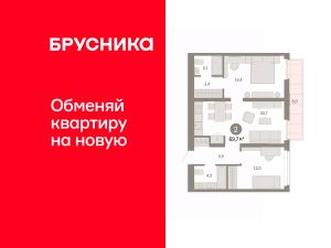 Продается 2-комн. квартира с предчистовой отделкой в ЖК "Республики 205" на 4 этаже. Общая площадь: 70.52 кв.м. Высота потолков 2.7 м.