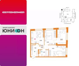 Продается 2комнатная квартира в новом ЖК "Юнион". Общая площадь квартиры 64,45 кв. м. Сдача — в 3 квартале 2024 года.