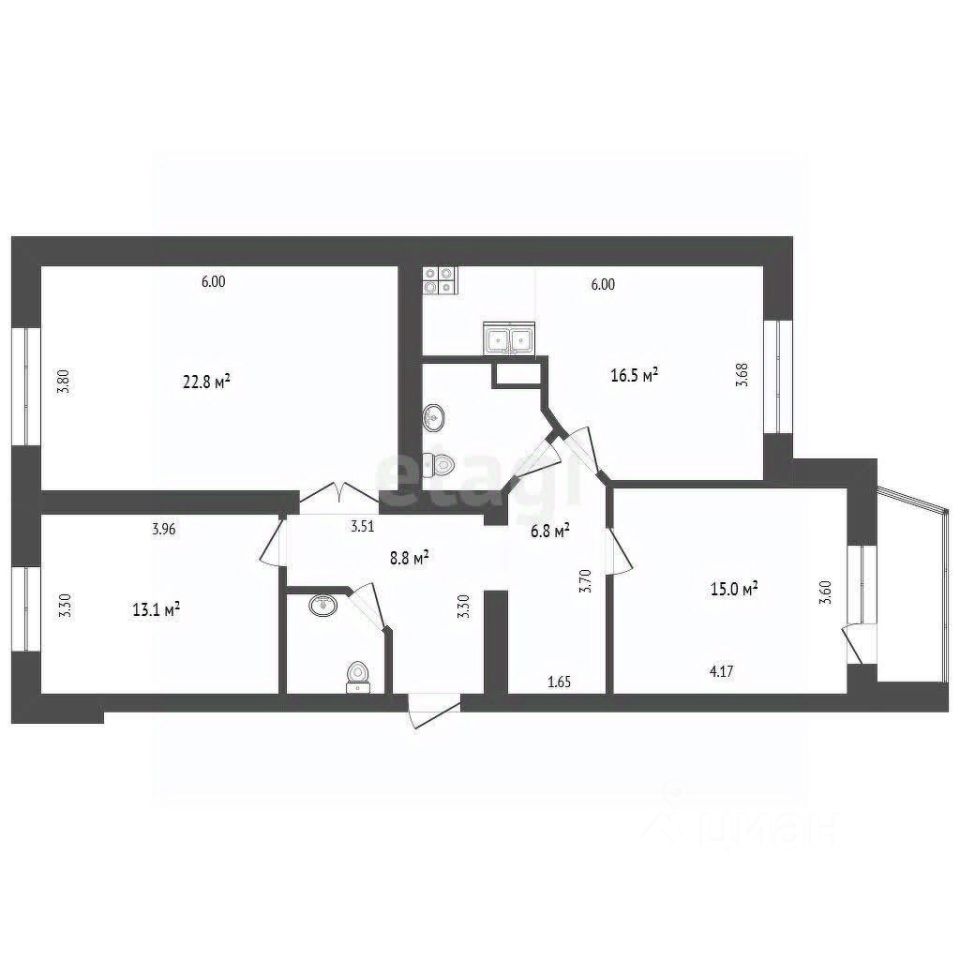 Внутри квартиры вас ждут три просторные изолированные комнаты, два современных санузла и уютная кухня-гостиная, где можно проводить время с семьей и друзьями. Балкон, остекленный и обшитый, станет отличным местом для утреннего кофе или вечернего отдыха.