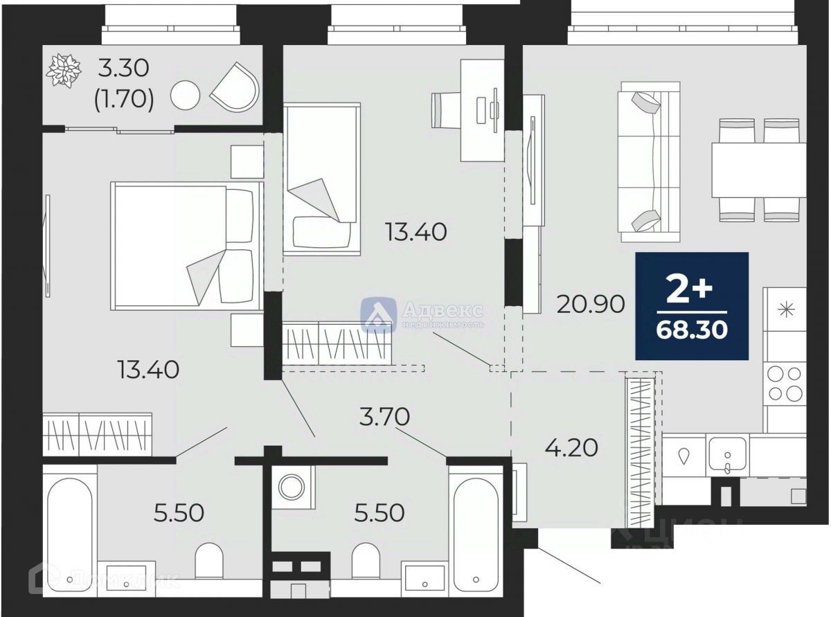 Продается уютная и просторная 2-комнатная квартира в новостройке на 2 этаже 24-этажного дома. Общая площадь квартиры составляет 68.30 кв.м., при этом кухня имеет площадь 20.90 кв.м. Это идеальный вариант для тех, кому важен комфорт и удобство.