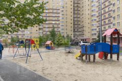 Во дворе: детская площадка, много парковочных мест.