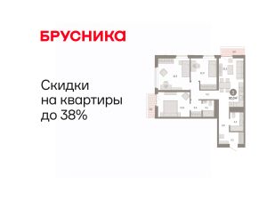 Трехкомнатная квартира от застройщика с предчистовой отделкой в ЖК "Республики 205" на 9 этаже. Общая площадь: 91.98 кв.м. Высота потолков 2.7 м.