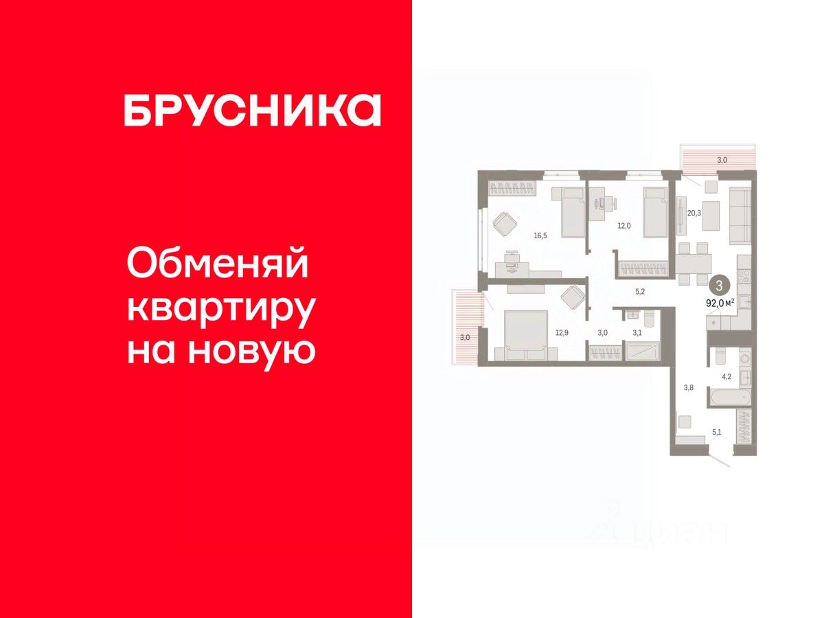 Продается 3-комн. квартира от застройщика с предчистовой отделкой в ЖК "Республики 205" на 9 этаже. Общая площадь: 91.98 кв.м. Высота потолков 2.7 м.