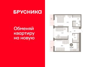 Просторная 2-комн. квартира с предчистовой отделкой в ЖК "Республики 205" на 9 этаже. Общая площадь: 71.34 кв.м. Высота потолков 2.7 м.