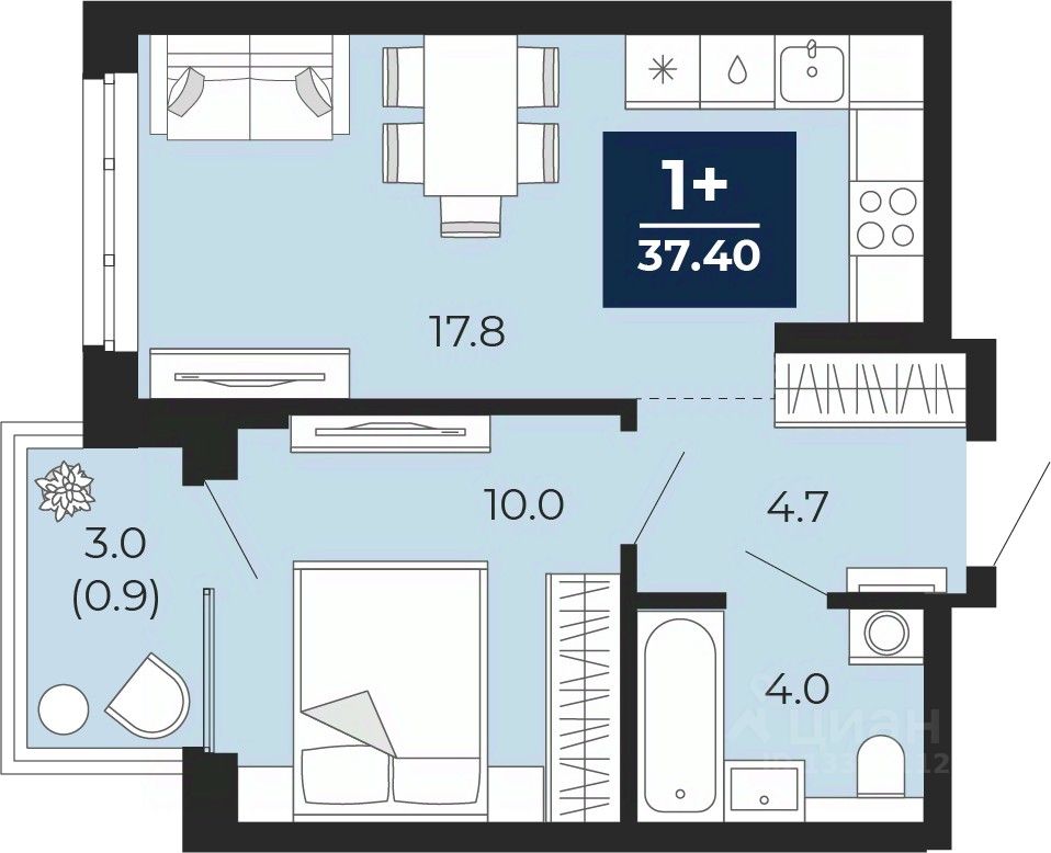 Продается 1-комн. квартира с предчистовой отделкой в ЖК "Мириады" на 10 этаже. Общая площадь: 37.4 кв.м., жилая: 11.2 кв.м., площадь просторной кухни-столовой: 14.7 кв.м. Все окна выходят на одну сторону. В квартире одна лоджия, один совмещенный санузел. Высота потолков 2.7 м.