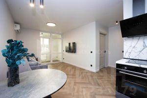 Продается однокомнатная квартира с кухней-гостиной в новом жилом комплексе комфорт-класса с дизайнерским ремонтом, мебелью и техникой. Видовая квартира на 9 этаже, состоящая из кухни-гостиной 18 квм с выходом на лоджию 4 квм, спальни 14 квм, прихожей 4.87 квм и санузла 4.57 квм. Качественный современный ремонт, мебель и техника. Все продумано до мелочей. Квартира полностью готова к своим новым жильцам. Закрытая территория двора, современная детская площадка, Прекрасно развитая инфраструктура. Дополнительно оплачивается комиссия с покупателя. Номер объекта: 1802541