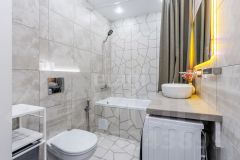 Санузел отделан керамогранитом, здесь уже установлена вся необходимая сантехника, что позволит вам сразу же наслаждаться жизнью в новом доме.
