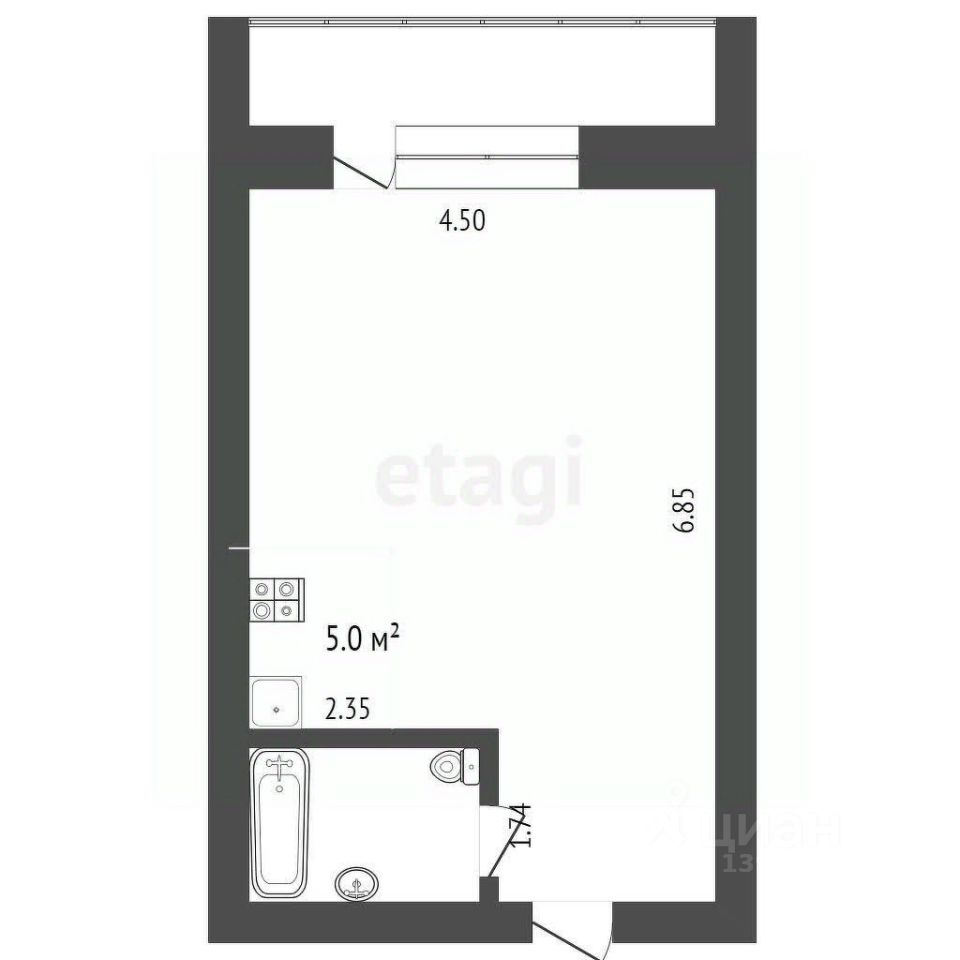 Продается просторная квартира-студия площадью 30,1 м² с балконом!