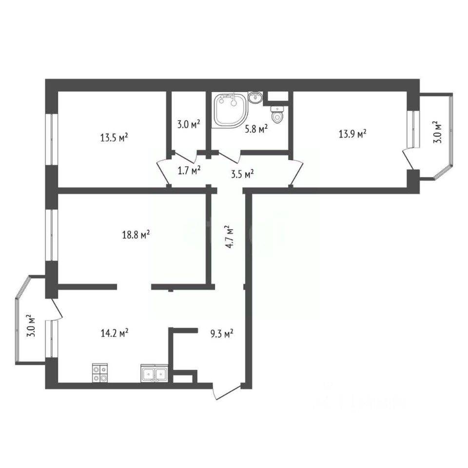 Комнаты: две комнаты по 19 м² и спальня 14,5 м² с выходом на лоджию дополнительное пространство и свет.