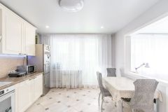 Кухня-гостиная: просторная, с выходом на застекленную лоджию наслаждайтесь утренним кофе с видом на окружающий пейзаж.