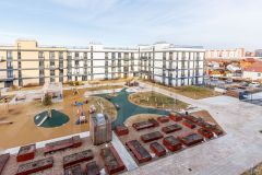 Просторные зеленые дворы, закрытые от транспорта. Через весь комплекс проложен пешеходный бульвар, организованы места отдыха и детские площадки для разных возрастов. Для велосипедистов — отдельные маршруты по всей территории. Закрытый двор с видео-наблюдением.Подземный паркинг и кладовые. Колясочная на 1 этаже.