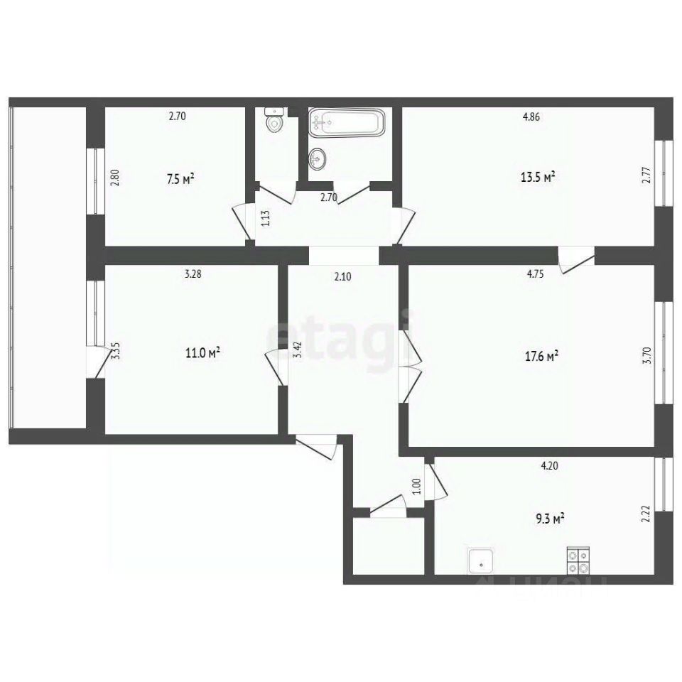 • Комфорт: Кухня правильной формы (9,3 кв.м), комнаты общей площадью 49,6 кв.м. Есть большая застекленная лоджия (6 кв.м).