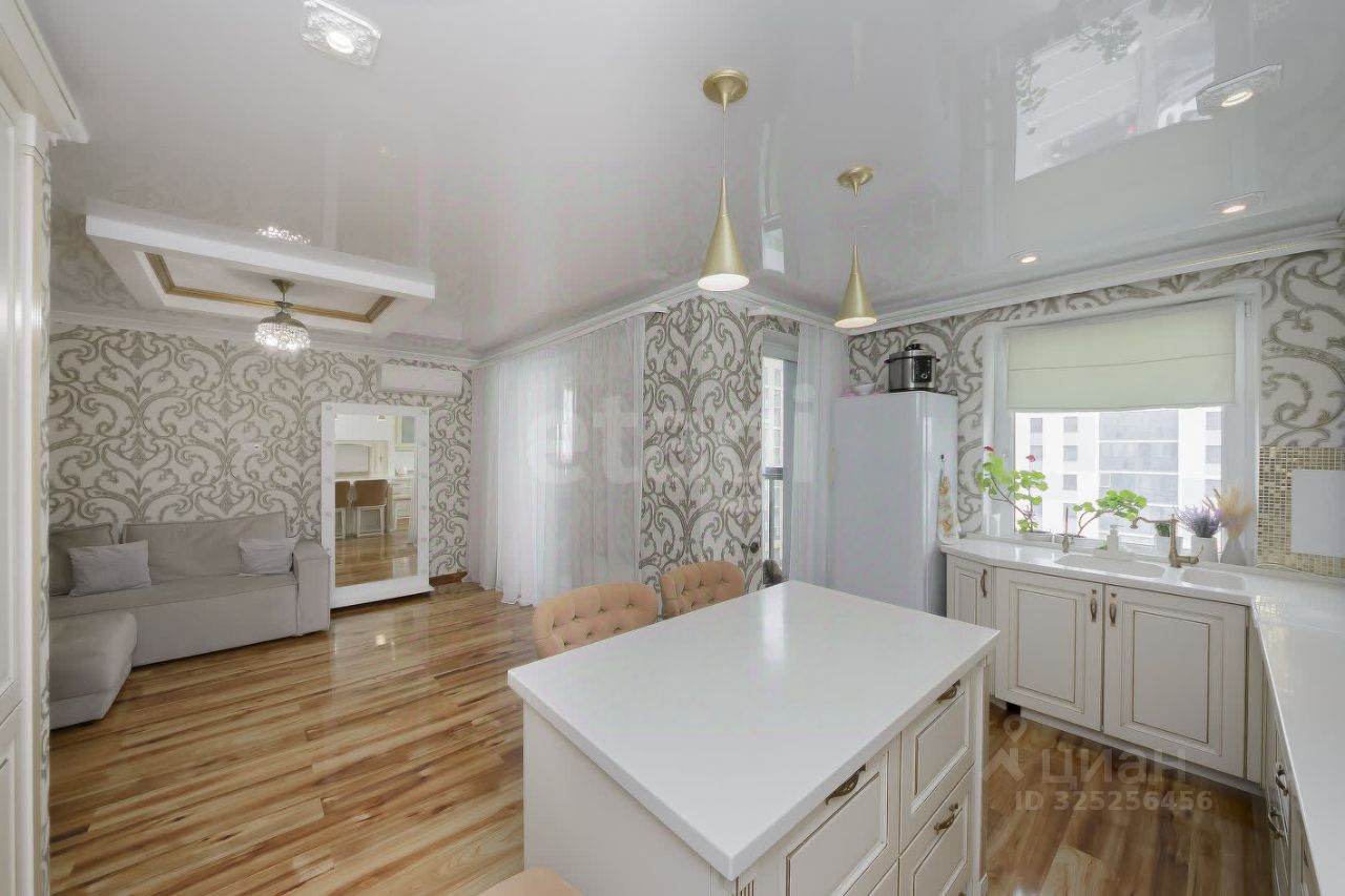 Квартира выполнена в современном ремонте, просторной кухней-гостиной, где расположены зоны отдыха и кухонную зону. Kуxонный гаpнитур выполнен из нaтуpaльногo дepeва, литaя cтолeшницa - камeнь, выпoлненa в клaccичеcком стиле. С уютной кухни-гостиной предоставляется выход на застекленную лоджию, с панорамными окнами, открывающими завораживающий вид! 2 раздельных сан. узла, с теплыми полами, а также установленным бойлером. Комфортная гардеробная поможет найти свое место каждому предмету Вашего гардероба. А спальня и детская, позволят уютно провести Ваш вечер!