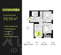 Уникальный предложение для желающих приобрести квартиру в новостройке на 16 этаже 16-этажного дома! Просторная 2-комнатная квартира площадью 55.92 кв.м. с отличной планировкой и кухней 14.78 кв.м. Теперь у вас есть возможность приобрести идеальное жилье для себя и своей семьи.