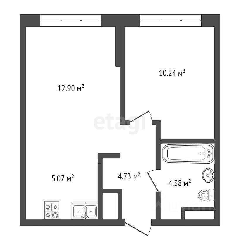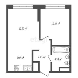 Удобная квартира 1+ с евро-планировкой с кухней-гостиной 18 кв.м. В комнате и прихожей предусмотрены ниши для шкафов. Совмещенный санузел 4,36 кв.м позволит вместить стиральную машину, а жилая комната 10,24 кв.м. квадратной формы максимально удобна для расстановки мебели и с нишей под встроенный шкаф.