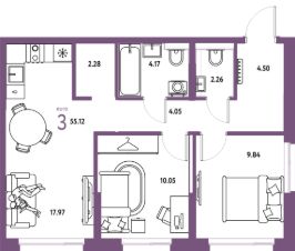 Продаётся 3-комнатная квартира в строящемся доме (ГП-2 (Дамбовская, 4к5)), срок сдачи: IV-кв. 2027, общей площадью 55.12 кв.м., на 6 этаже. "Страна.Прибрежная" — жилой квартал с богатой историей, расположившийся в районе улиц ЕлизароваДамбовскаяМельникайте. Раньше здесь селились работники знаменитого Тюменского судостроительного завода, а сегодня их преемники могут почувствовать себя настоящими мореплавателями, которые отправились в кругосветное путешествие на огромном лайнере. Будущие жители прикоснутся к истории локации и пропитаются истинной романтикой приключений и открытий. И всё это в условиях максимального комфорта, который в "Стране.Прибрежной" окружает на всей территории: двор без машин и случайных прохожих; подземный паркинг; дизайнерские парадные; дворовое пространство разделено на несколько зон, чтобы каждый нашел себе занятие по душе; квартиры с лоджиями, балконами, с террасами и панорамными окнами, чтобы жители могли любоваться красивой панорамой города; круглосуточное видеонаблюдение и собственная охрана 24/7; на первых этажах квартала размещена необходимая коммерция — не придётся надолго уходить из дома, чтобы решить бытовые вопросы, — нужное под рукой.