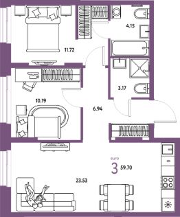 Продаётся 3-комнатная квартира в строящемся доме (ГП-2 (дом Канны, Защитников Отечества, 18)), срок сдачи: I-кв. 2027, общей площадью 59.7 кв.м., на 8 этаже. В жилом комплексе "Европейский берег" предусмотрено строительство отдельно стоящих, закрытых, надземных паркингов. Попасть к своему автомобилю Вы сможете прямо из подъезда, через теплый переход, не выходя при этом на улицу. Парковочное место уже включено в стоимость большинства квартир. В квартирах комплекса "Европейский берег" гостиная объединена с кухней, что позволяет создать комфортное пространство для семейного времяпрепровождения. Проектом предусмотрено большое количество 4 и 5 комнатных квартир, для того, чтобы у каждого была своя комната.
