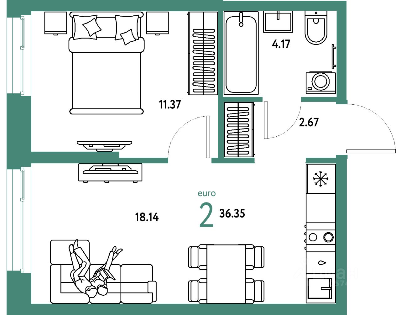 Продаётся 2-комнатная квартира в строящемся доме (ГП-2 (дом Канны, Защитников Отечества, 18)), срок сдачи: I-кв. 2027, общей площадью 36.35 кв.м., на 8 этаже. В жилом комплексе "Европейский берег" предусмотрено строительство отдельно стоящих, закрытых, надземных паркингов. Попасть к своему автомобилю Вы сможете прямо из подъезда, через теплый переход, не выходя при этом на улицу. Парковочное место уже включено в стоимость большинства квартир. В квартирах комплекса "Европейский берег" гостиная объединена с кухней, что позволяет создать комфортное пространство для семейного времяпрепровождения. Проектом предусмотрено большое количество 4 и 5 комнатных квартир, для того, чтобы у каждого была своя комната.