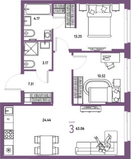 Продаётся 3-комнатная квартира в строящемся доме (ГП-2 (дом Канны, Защитников Отечества, 18)), срок сдачи: I-кв. 2027, общей площадью 63.06 кв.м., на 12 этаже. В жилом комплексе "Европейский берег" предусмотрено строительство отдельно стоящих, закрытых, надземных паркингов. Попасть к своему автомобилю Вы сможете прямо из подъезда, через теплый переход, не выходя при этом на улицу. Парковочное место уже включено в стоимость большинства квартир. В квартирах комплекса "Европейский берег" гостиная объединена с кухней, что позволяет создать комфортное пространство для семейного времяпрепровождения. Проектом предусмотрено большое количество 4 и 5 комнатных квартир, для того, чтобы у каждого была своя комната.