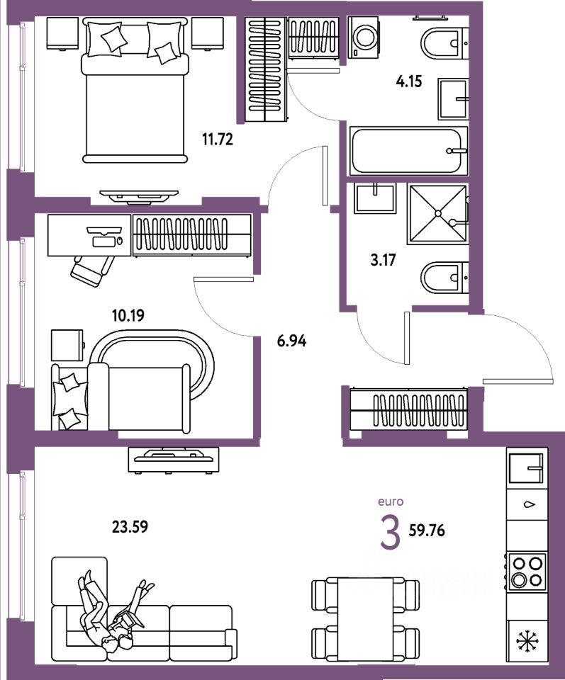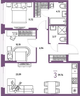 Продаётся 3-комнатная квартира в строящемся доме (ГП-2 (дом Канны, Защитников Отечества, 18)), срок сдачи: I-кв. 2027, общей площадью 59.76 кв.м., на 12 этаже. В жилом комплексе "Европейский берег" предусмотрено строительство отдельно стоящих, закрытых, надземных паркингов. Попасть к своему автомобилю Вы сможете прямо из подъезда, через теплый переход, не выходя при этом на улицу. Парковочное место уже включено в стоимость большинства квартир. В квартирах комплекса "Европейский берег" гостиная объединена с кухней, что позволяет создать комфортное пространство для семейного времяпрепровождения. Проектом предусмотрено большое количество 4 и 5 комнатных квартир, для того, чтобы у каждого была своя комната.