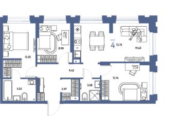 Продаётся 4-комнатная квартира в строящемся доме (ГП-2 (дом Канны, Защитников Отечества, 18)), срок сдачи: I-кв. 2027, общей площадью 72.75 кв.м., на 5 этаже. В жилом комплексе "Европейский берег" предусмотрено строительство отдельно стоящих, закрытых, надземных паркингов. Попасть к своему автомобилю Вы сможете прямо из подъезда, через теплый переход, не выходя при этом на улицу. Парковочное место уже включено в стоимость большинства квартир. В квартирах комплекса "Европейский берег" гостиная объединена с кухней, что позволяет создать комфортное пространство для семейного времяпрепровождения. Проектом предусмотрено большое количество 4 и 5 комнатных квартир, для того, чтобы у каждого была своя комната.