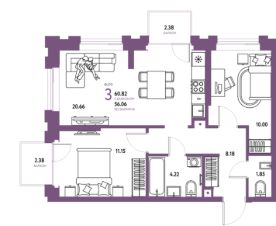Продаётся 3-комнатная квартира в строящемся доме (ГП-2 (дом Канны, Защитников Отечества, 18)), срок сдачи: I-кв. 2027, общей площадью 60.82 кв.м., на 11 этаже. В жилом комплексе "Европейский берег" предусмотрено строительство отдельно стоящих, закрытых, надземных паркингов. Попасть к своему автомобилю Вы сможете прямо из подъезда, через теплый переход, не выходя при этом на улицу. Парковочное место уже включено в стоимость большинства квартир. В квартирах комплекса "Европейский берег" гостиная объединена с кухней, что позволяет создать комфортное пространство для семейного времяпрепровождения. Проектом предусмотрено большое количество 4 и 5 комнатных квартир, для того, чтобы у каждого была своя комната.