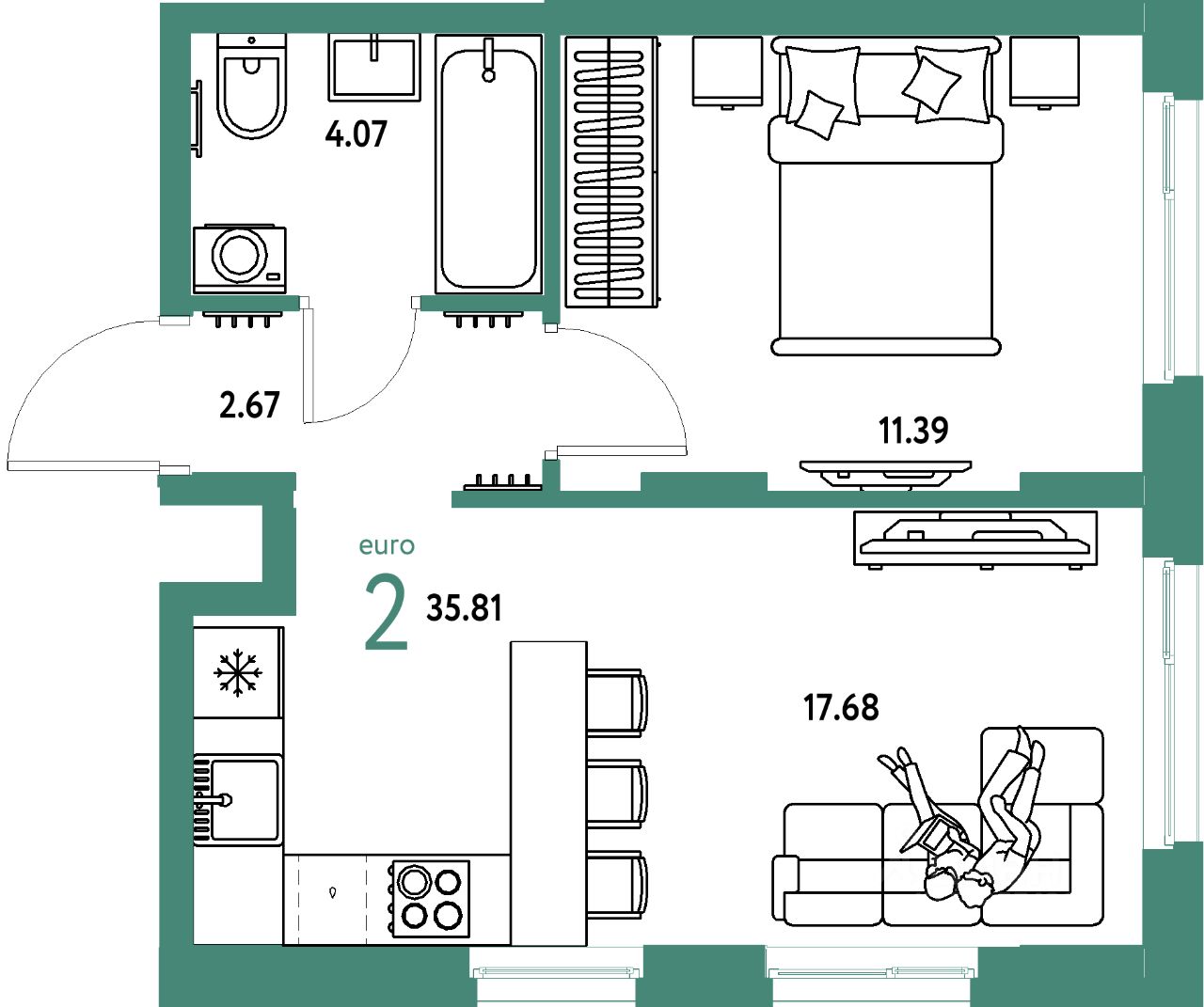 Продаётся 2-комнатная квартира в строящемся доме (ГП-2 (дом Канны, Защитников Отечества, 18)), срок сдачи: I-кв. 2027, общей площадью 35.81 кв.м., на 7 этаже. В жилом комплексе "Европейский берег" предусмотрено строительство отдельно стоящих, закрытых, надземных паркингов. Попасть к своему автомобилю Вы сможете прямо из подъезда, через теплый переход, не выходя при этом на улицу. Парковочное место уже включено в стоимость большинства квартир. В квартирах комплекса "Европейский берег" гостиная объединена с кухней, что позволяет создать комфортное пространство для семейного времяпрепровождения. Проектом предусмотрено большое количество 4 и 5 комнатных квартир, для того, чтобы у каждого была своя комната.