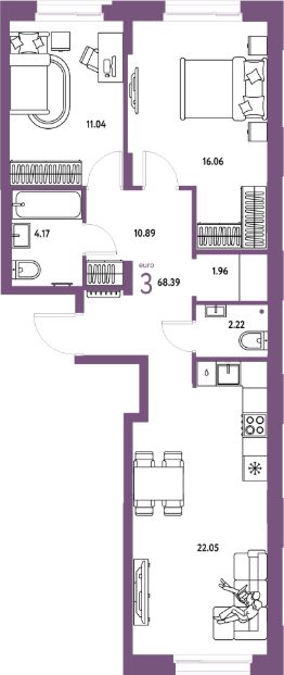 Продаётся 3-комнатная квартира в строящемся доме (ГП-2 (дом Канны, Защитников Отечества, 18)), срок сдачи: I-кв. 2027, общей площадью 68.39 кв.м., на 10 этаже. В жилом комплексе "Европейский берег" предусмотрено строительство отдельно стоящих, закрытых, надземных паркингов. Попасть к своему автомобилю Вы сможете прямо из подъезда, через теплый переход, не выходя при этом на улицу. Парковочное место уже включено в стоимость большинства квартир. В квартирах комплекса "Европейский берег" гостиная объединена с кухней, что позволяет создать комфортное пространство для семейного времяпрепровождения. Проектом предусмотрено большое количество 4 и 5 комнатных квартир, для того, чтобы у каждого была своя комната.