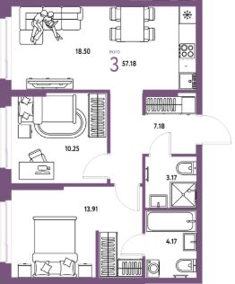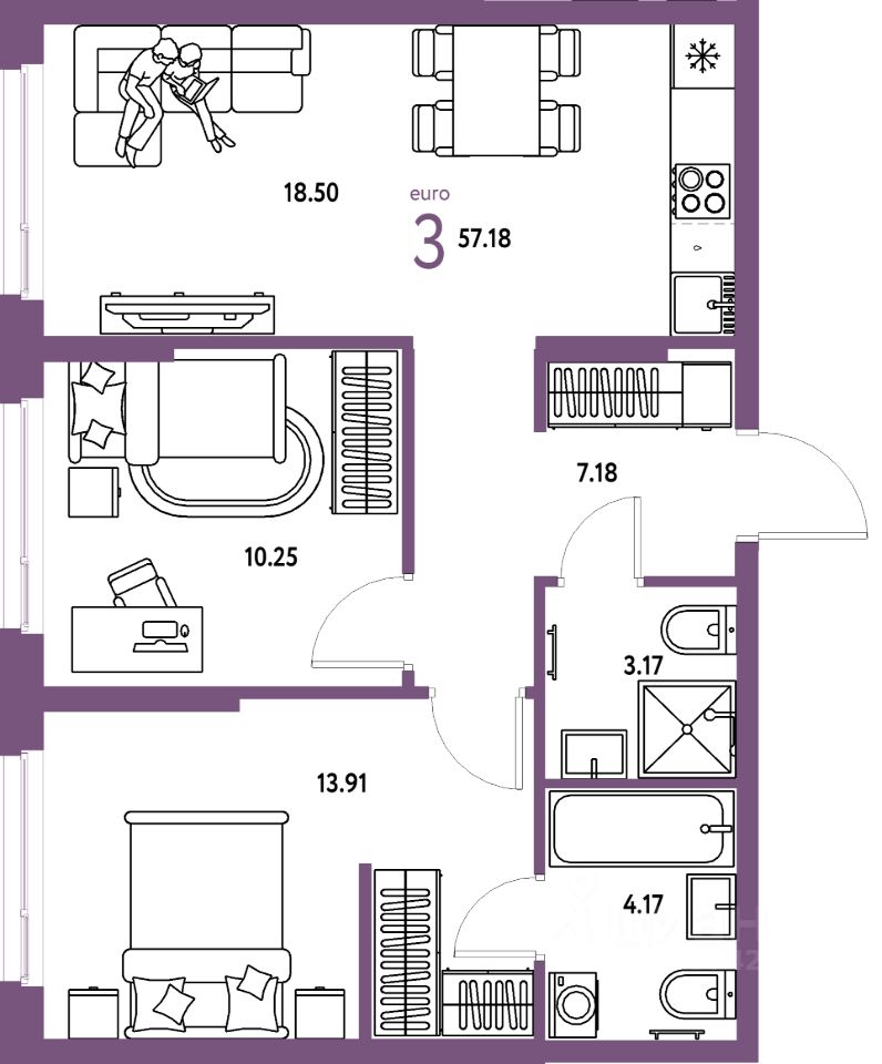 Продаётся 3-комнатная квартира в строящемся доме (ГП-2 (дом Канны, Защитников Отечества, 18)), срок сдачи: I-кв. 2027, общей площадью 57.18 кв.м., на 13 этаже. В жилом комплексе "Европейский берег" предусмотрено строительство отдельно стоящих, закрытых, надземных паркингов. Попасть к своему автомобилю Вы сможете прямо из подъезда, через теплый переход, не выходя при этом на улицу. Парковочное место уже включено в стоимость большинства квартир. В квартирах комплекса "Европейский берег" гостиная объединена с кухней, что позволяет создать комфортное пространство для семейного времяпрепровождения. Проектом предусмотрено большое количество 4 и 5 комнатных квартир, для того, чтобы у каждого была своя комната.