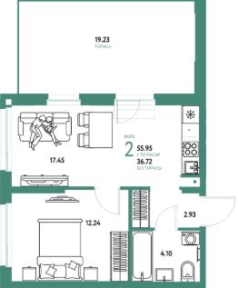 Продаётся 2-комнатная квартира в строящемся доме (ГП-2 (дом Канны, Защитников Отечества, 18)), срок сдачи: I-кв. 2027, общей площадью 55.95 кв.м., на 13 этаже. В жилом комплексе "Европейский берег" предусмотрено строительство отдельно стоящих, закрытых, надземных паркингов. Попасть к своему автомобилю Вы сможете прямо из подъезда, через теплый переход, не выходя при этом на улицу. Парковочное место уже включено в стоимость большинства квартир. В квартирах комплекса "Европейский берег" гостиная объединена с кухней, что позволяет создать комфортное пространство для семейного времяпрепровождения. Проектом предусмотрено большое количество 4 и 5 комнатных квартир, для того, чтобы у каждого была своя комната.