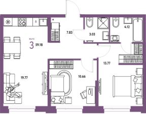 Продаётся 3-комнатная квартира в строящемся доме (ГП-2 (дом Канны, Защитников Отечества, 18)), срок сдачи: I-кв. 2027, общей площадью 59.18 кв.м., на 13 этаже. В жилом комплексе "Европейский берег" предусмотрено строительство отдельно стоящих, закрытых, надземных паркингов. Попасть к своему автомобилю Вы сможете прямо из подъезда, через теплый переход, не выходя при этом на улицу. Парковочное место уже включено в стоимость большинства квартир. В квартирах комплекса "Европейский берег" гостиная объединена с кухней, что позволяет создать комфортное пространство для семейного времяпрепровождения. Проектом предусмотрено большое количество 4 и 5 комнатных квартир, для того, чтобы у каждого была своя комната.