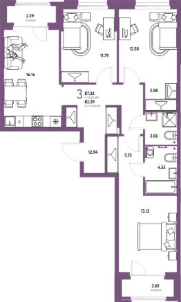 Продаётся 3-комнатная квартира в строящемся доме (ГП-2 (дом Канны, Защитников Отечества, 18)), срок сдачи: I-кв. 2027, общей площадью 87.33 кв.м., на 7 этаже. В жилом комплексе "Европейский берег" предусмотрено строительство отдельно стоящих, закрытых, надземных паркингов. Попасть к своему автомобилю Вы сможете прямо из подъезда, через теплый переход, не выходя при этом на улицу. Парковочное место уже включено в стоимость большинства квартир. В квартирах комплекса "Европейский берег" гостиная объединена с кухней, что позволяет создать комфортное пространство для семейного времяпрепровождения. Проектом предусмотрено большое количество 4 и 5 комнатных квартир, для того, чтобы у каждого была своя комната.