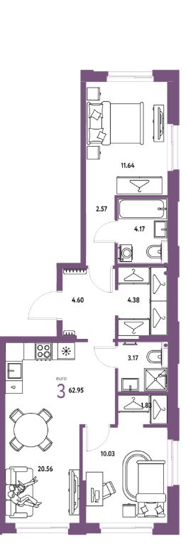 Продаётся 3-комнатная квартира в строящемся доме (ГП-9 (дом Хельсинки, Защитников Отечества, 15)), срок сдачи: IV-кв. 2027, общей площадью 62.95 кв.м., на 17 этаже. В жилом комплексе "Европейский берег" предусмотрено строительство отдельно стоящих, закрытых, надземных паркингов. Попасть к своему автомобилю Вы сможете прямо из подъезда, через теплый переход, не выходя при этом на улицу. Парковочное место уже включено в стоимость большинства квартир. В квартирах комплекса "Европейский берег" гостиная объединена с кухней, что позволяет создать комфортное пространство для семейного времяпрепровождения. Проектом предусмотрено большое количество 4 и 5 комнатных квартир, для того, чтобы у каждого была своя комната.