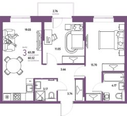 Продаётся 3-комнатная квартира в строящемся доме (ГП-9 (дом Хельсинки, Защитников Отечества, 15)), срок сдачи: IV-кв. 2027, общей площадью 63.28 кв.м., на 6 этаже. В жилом комплексе "Европейский берег" предусмотрено строительство отдельно стоящих, закрытых, надземных паркингов. Попасть к своему автомобилю Вы сможете прямо из подъезда, через теплый переход, не выходя при этом на улицу. Парковочное место уже включено в стоимость большинства квартир. В квартирах комплекса "Европейский берег" гостиная объединена с кухней, что позволяет создать комфортное пространство для семейного времяпрепровождения. Проектом предусмотрено большое количество 4 и 5 комнатных квартир, для того, чтобы у каждого была своя комната.